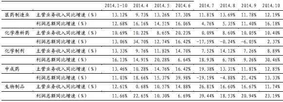 图二:2014年1-10月医药制造业及主要子行业盈利数据